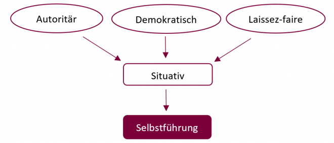 Basierend auf der klassischen Einteilung der Führungsstile nach Lewin, und zwar in autoritär, demokratisch und Laissez-faire, kamen in den 1970er Jahren die situativen Führungsstile auf. Das heißt zum Beispiel, dass Mitarbeiter mit geringer Eigenmotivation und unsichere Beschäftigte eher mit klaren Anweisungen und autoritär geführt werden sollten. Mitarbeiter mit entsprechend hoher Eigenmotivation benötigen eher einen Laissez-faire-Führungsstil. In Zeiten der Digitalisierung ist es wichtig, sich nicht auf einen Führungsstil festzulegen, sondern je nach Mitarbeiter oder Situation zu handeln.